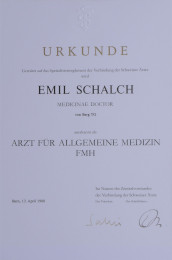 1987 Erlangen des Facharzttitels Allgemeine Innere Medizin, 1988 Übernahme der Praxis von Dr. med. Ernst Zäch in Oberägeri und somit Einstieg in die Hausarztmedizin.