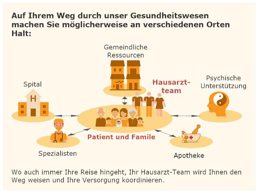 Unsere patientenzentrierte Versorgung stützt sich auf wissenschaftliche Erkenntnisse und eignet sich besonders gut für Hausarztpraxen. Im Schweizer Gesundheitssystem, das auf Grundversorgung baut, lässt sich dieses Modell hervorragend umsetzen.